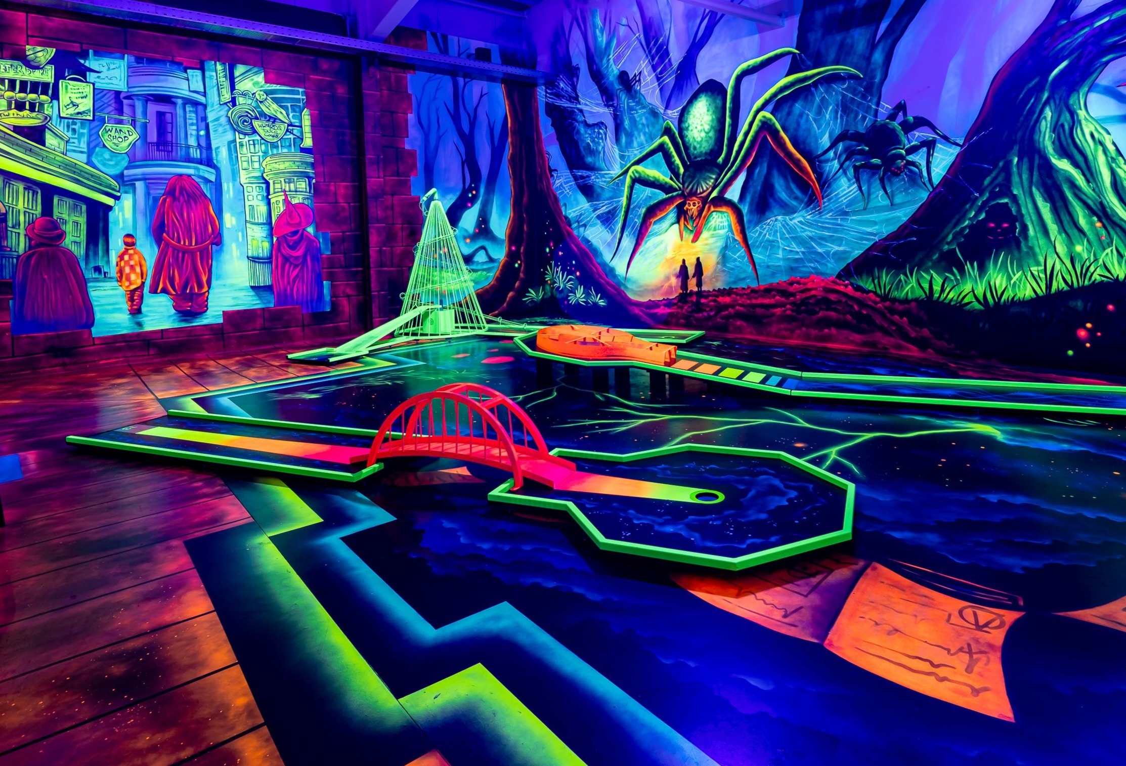 Vergessen Sie das klassische Grün und einfache Hindernisse. Beim Adventure Minigolf erwartet Sie ein farbenfroher Mix aus fantasievollen Welten, kreativen Themen und spannenden Herausforderungen. Jede Bahn bietet neue Überraschungen und sorgt für Abwechslung bei jedem Besuch.