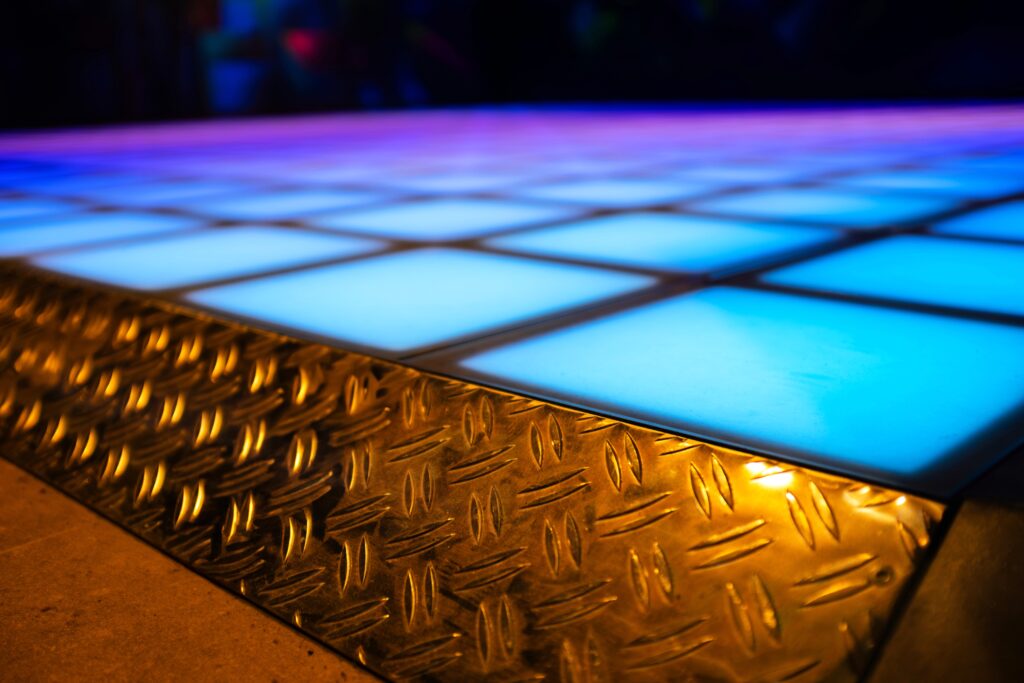 Das Herzstück des Spiels sind die modularen Panels. Jedes misst 30 × 30 × 7,5 Zentimeter und leuchtet in kräftigen Farben. Die Oberfläche besteht aus 10 Millimeter starkem Sicherheitsglas und ist für hohe Belastungen ausgelegt. Dadurch bleibt Lightjumper auch bei intensivem Spielbetrieb zuverlässig und sicher.